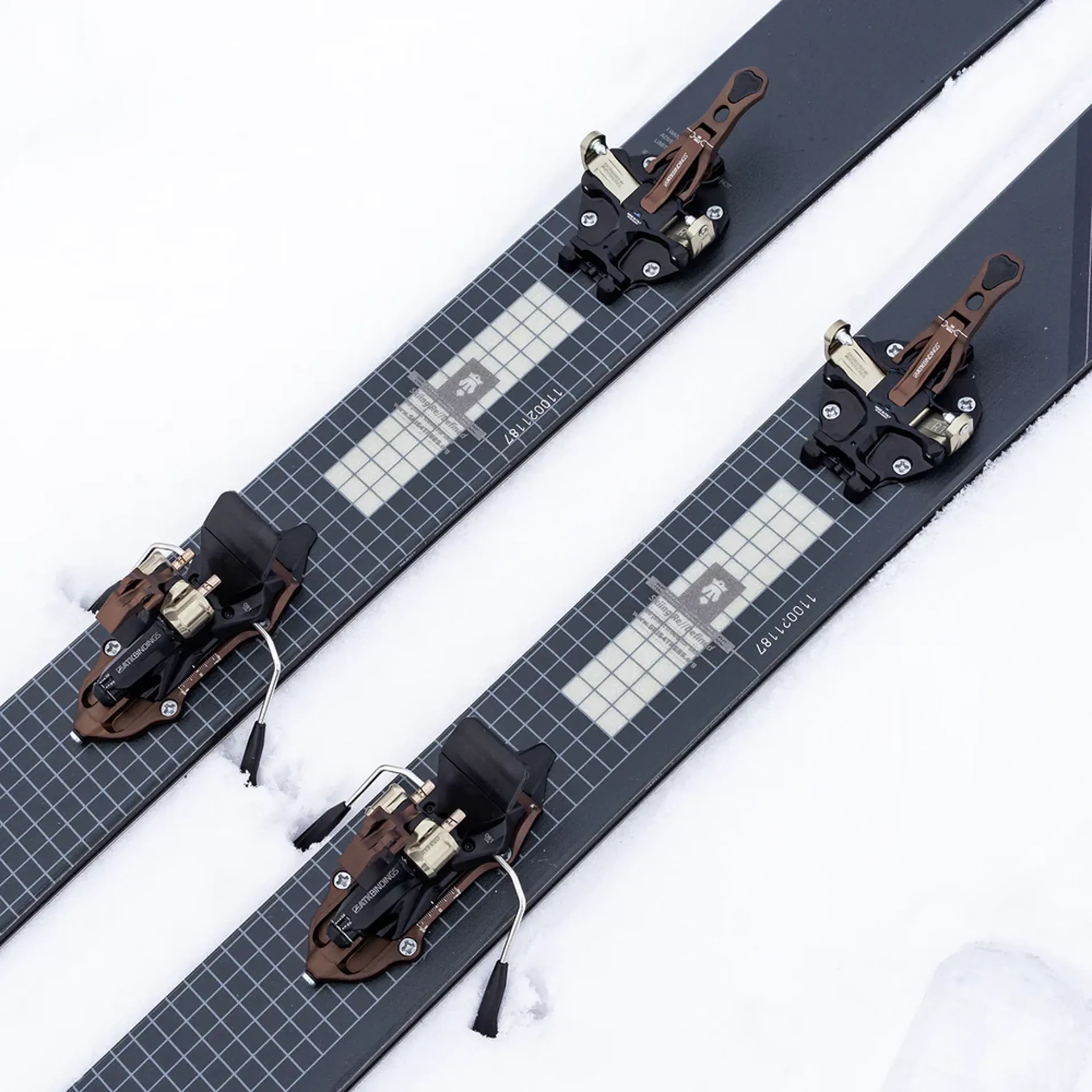 Brake and crampon widths 91mm, 97mm, 102mm, 108mm, 120mm, (135mm not available with binding as standard)